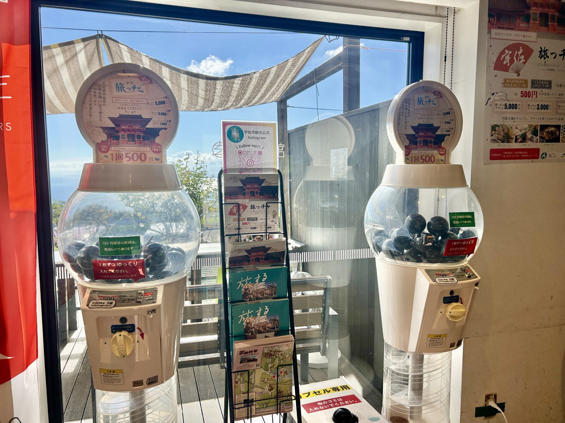 SAに設置された「旅っチャ機」でカプセルを購入すると、購入金額を上回る地域で使えるチケットが入っています。