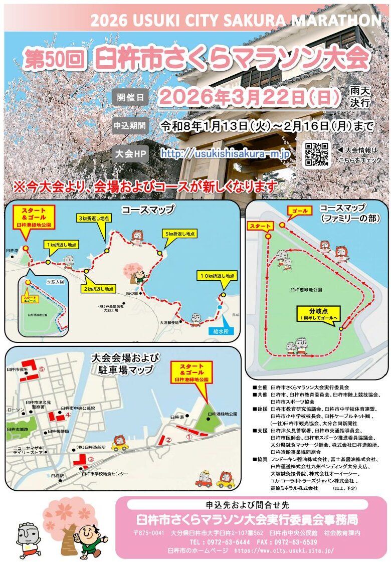 桜の名所を駆け抜けよう!『第50回 臼杵市さくらマラソン大会』が開催されます。