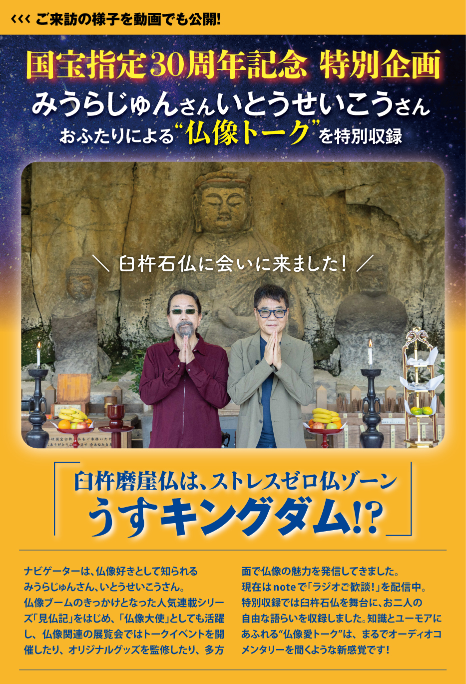 国宝指定30周年記念 特別企画『見仏記コンビ×臼杵石仏 音声ガイド』公開中!
