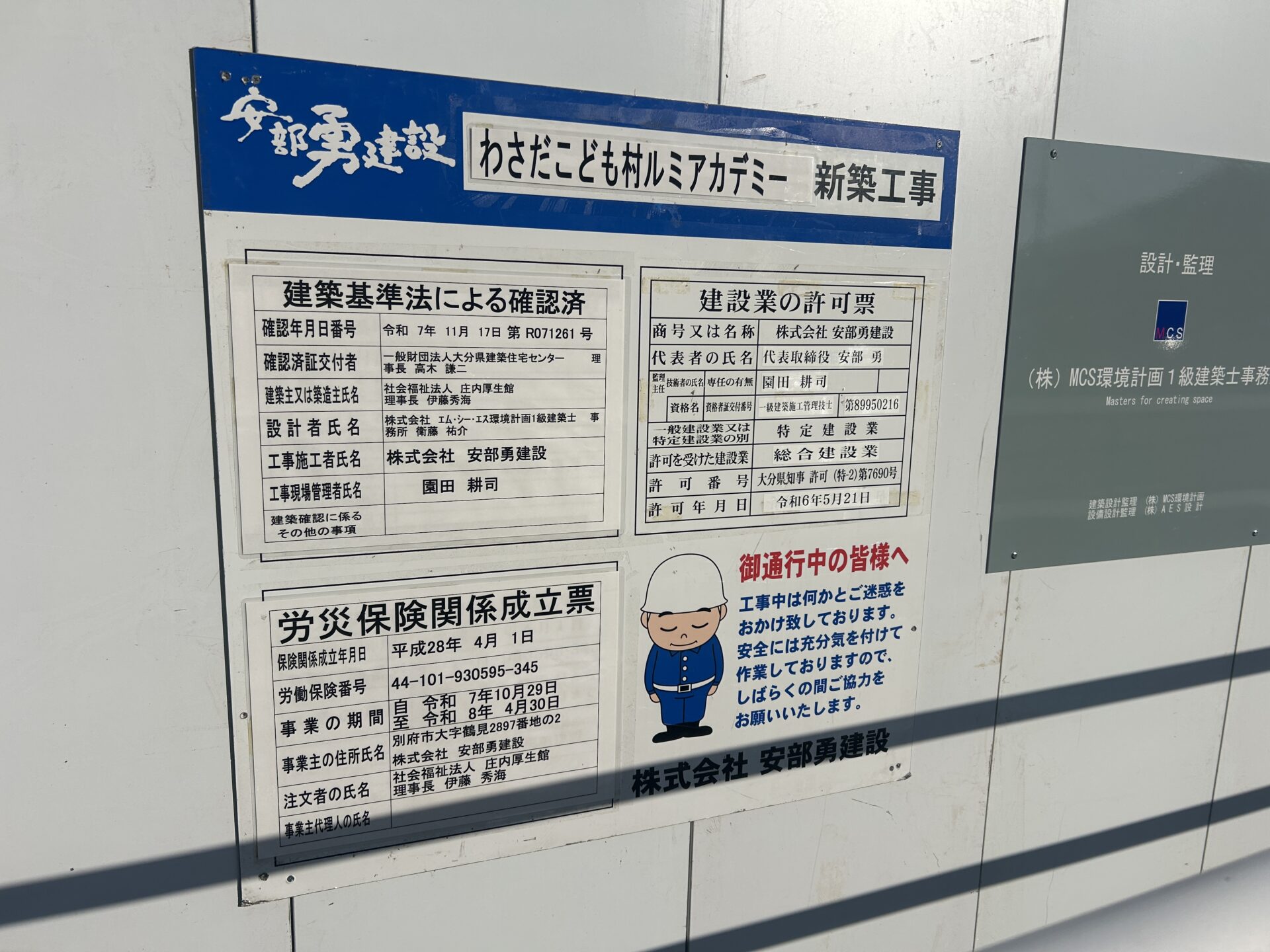 建設中の建物は『わさだこども村ルミアカデミー』という施設で、『庄内厚生館』という社会福祉法人が運営する施設のようです。