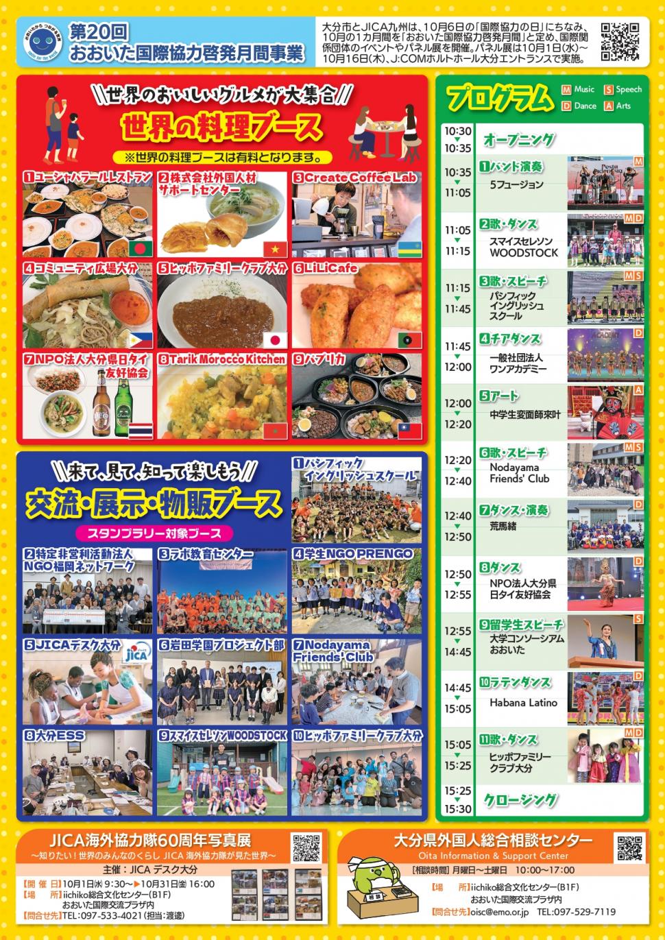 10月6日の「国際協力の日」にちなみ、おおいた国際協力啓発月間のメインイベントとして開催されます。世界のさまざまな国を身近に感じることが出来ます。