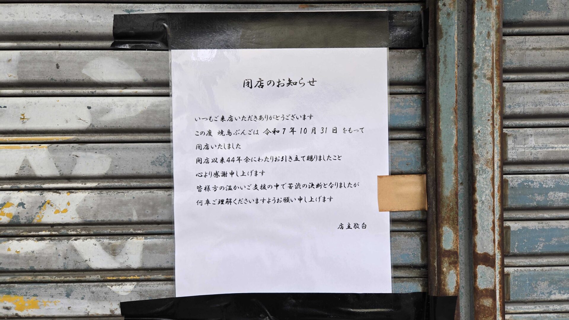長く営業されてきたお店の閉店は残念です。