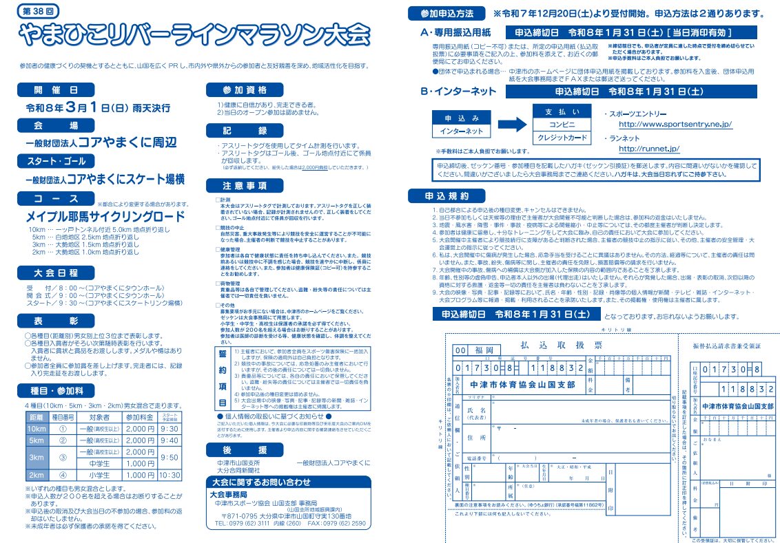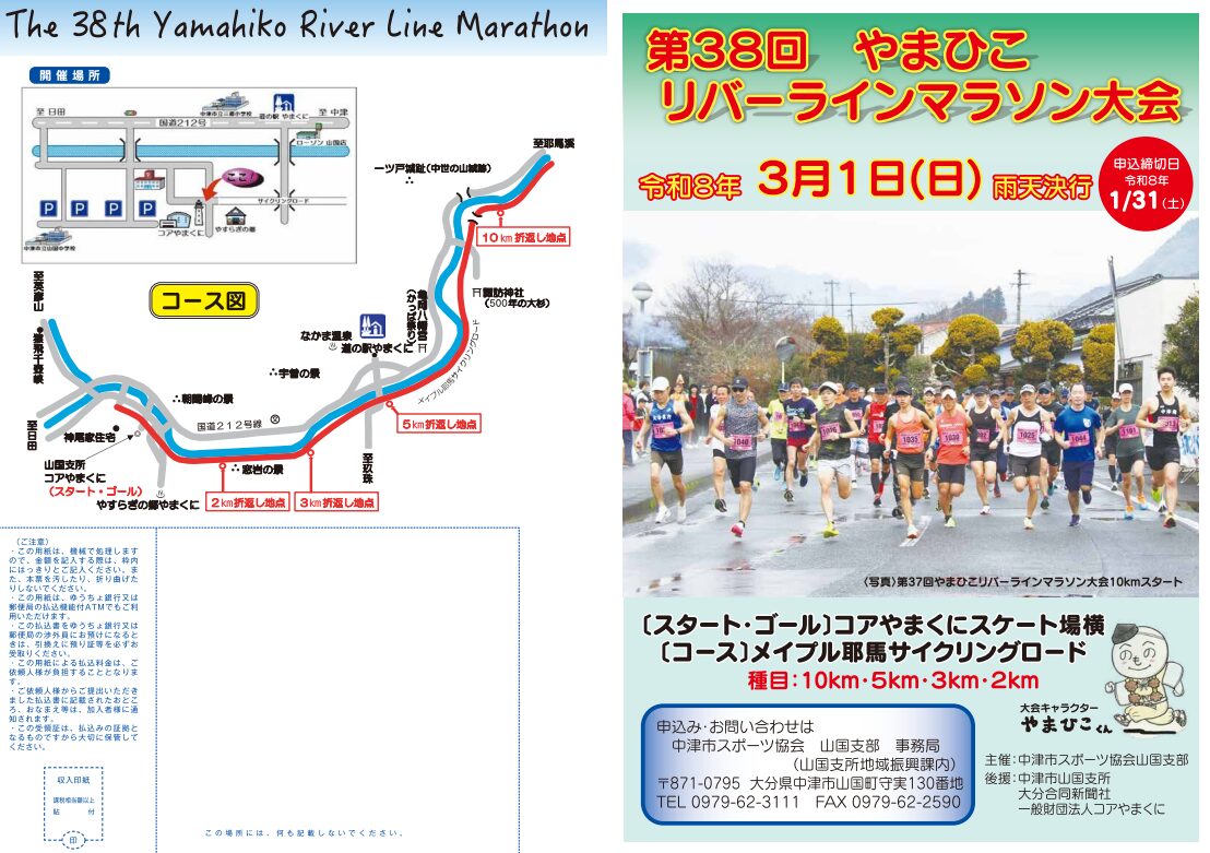 参加者募集中『第38回 やまひこリバーラインマラソン大会』が開催されます。
