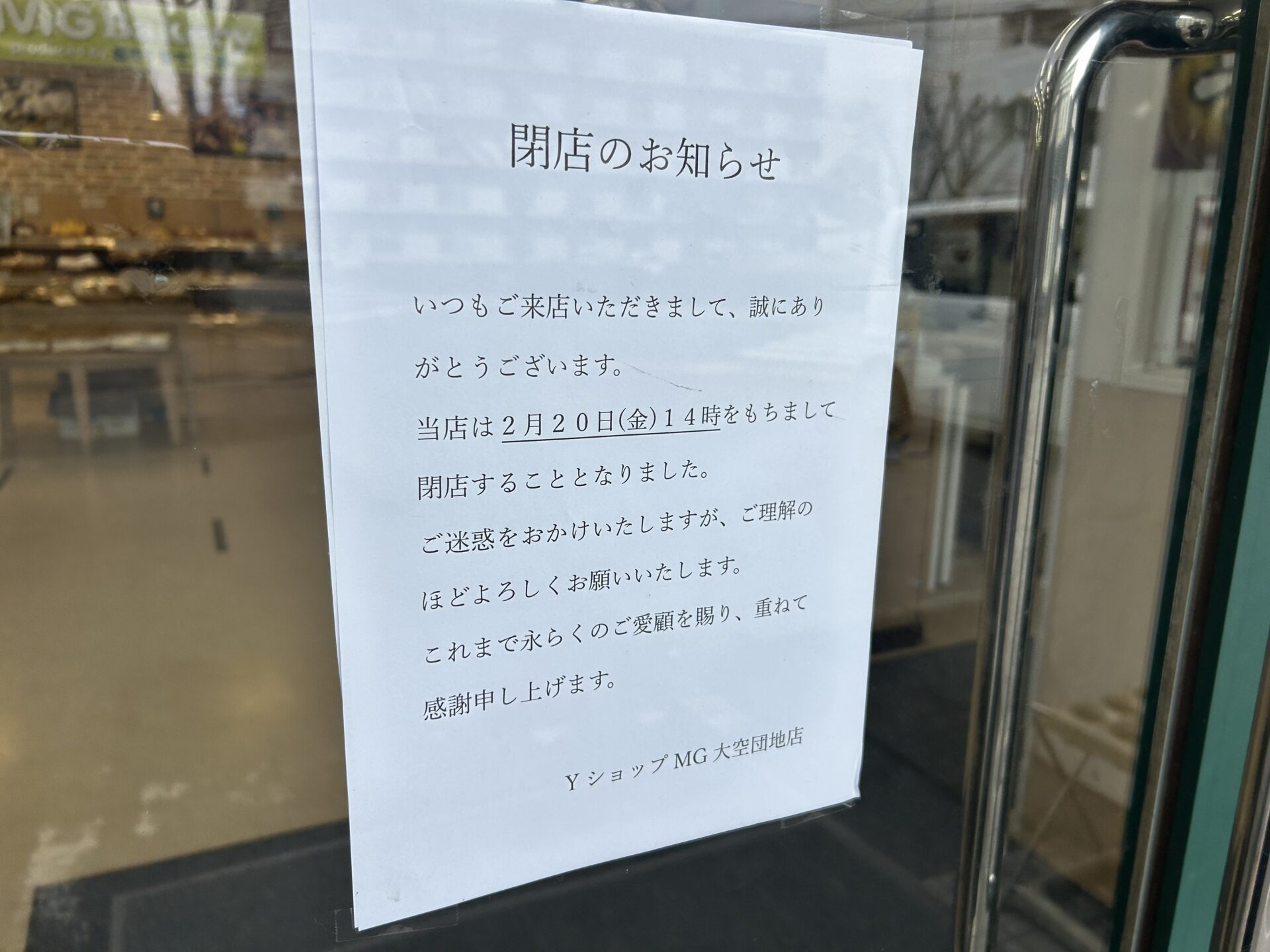 大分市大津町の『ヤマザキYショップMG 大空団地店』が閉店するそうです。