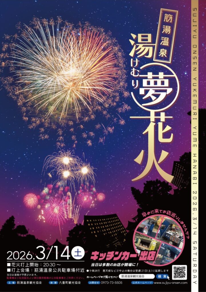 筋湯温泉にて『湯けむり夢花火』が開催されます。